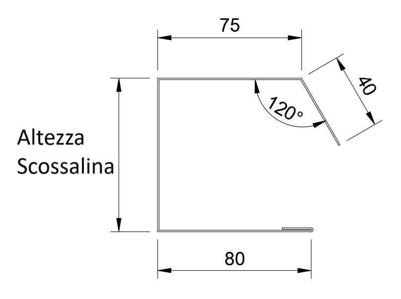 Ogni scossalina è progettata per coprire lo spessore del pannello + l’altezza della greca (40 mm).